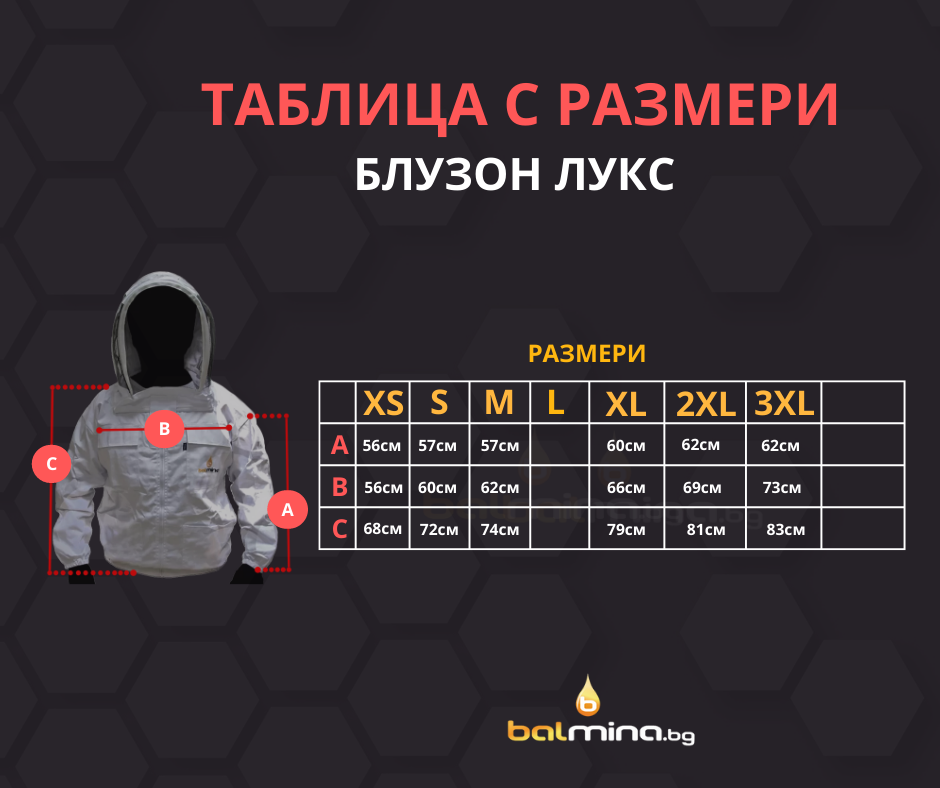 Таблица с размери за блузон лукс скафандър було