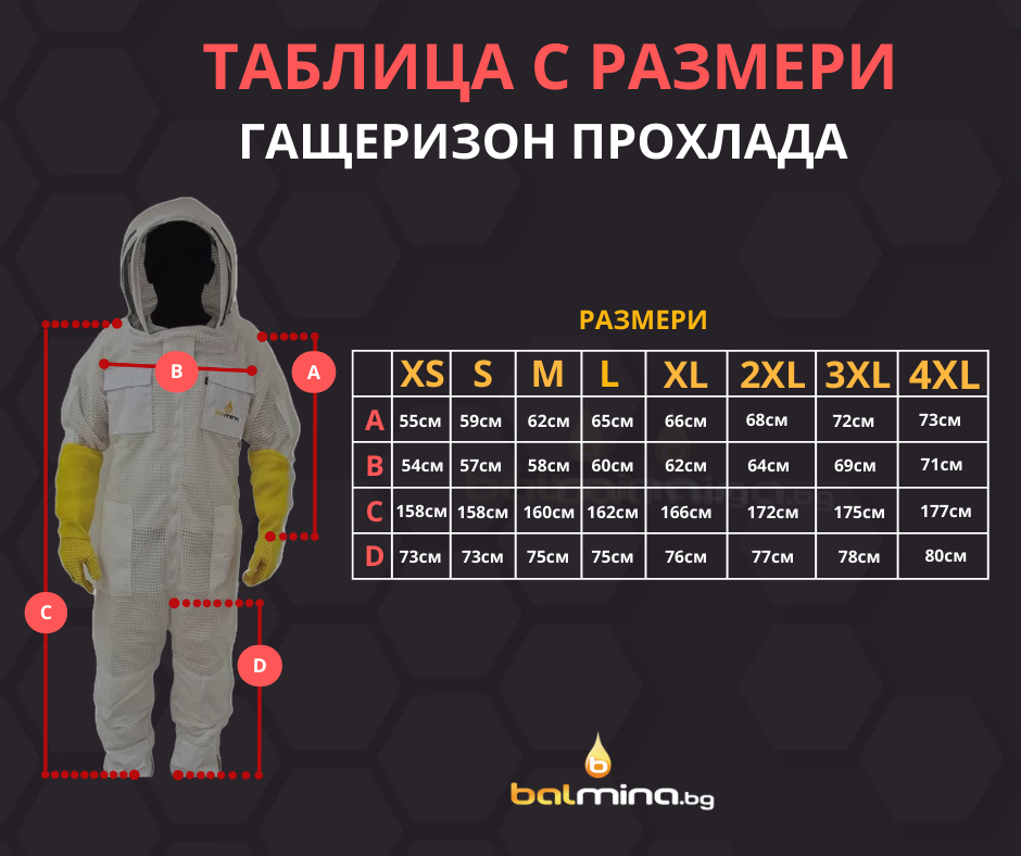 Таблица с размери за гащеризон прохлада скафандър було