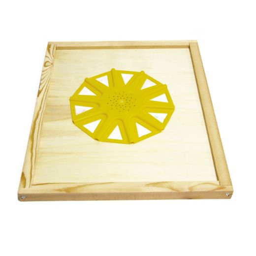 Пчелогонка монтирана на табла за отстраняване на пчелите от медовите корпуси и магазини.Таблата е с размери на 10 рамков кошер или корпусен.