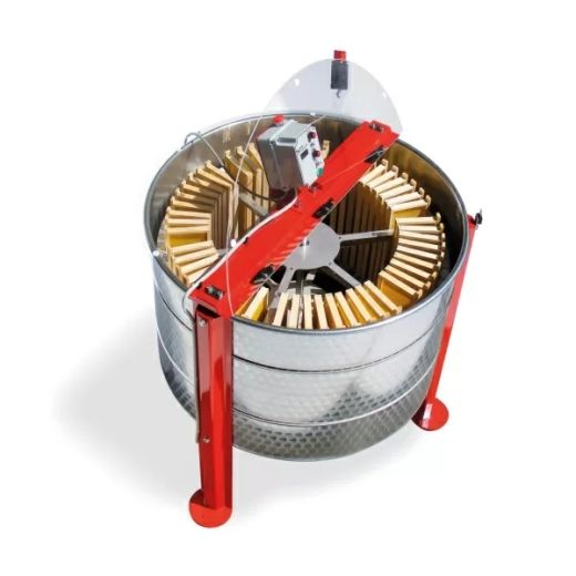 Радиалната Центрофуга за мед ALBATROS VARIO за 54 магазинни, 34 корпусни, 24 плодникови рамки , със крака здрави от неръждаема стомана,сглобени с дръжки за улесняване на транспортирането и горната лента от неръждаема стомана.